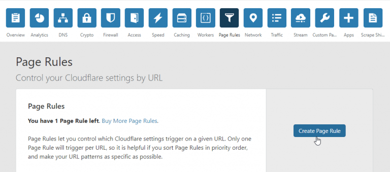 Go to the Page Rules tab in the dashboard and click Create Page Rule